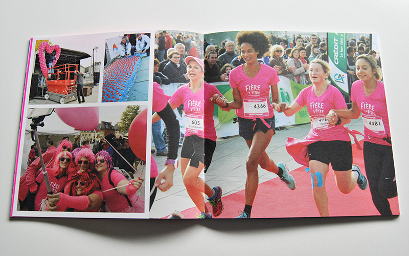 52 pages couvertes de rose : de la 1ère édition en 2007 jusqu’à aujourd’hui, de l’installation des lieux à l’échauffement, de la remise des tee-shirts par les nombreux bénévoles aux épreuves sportives…